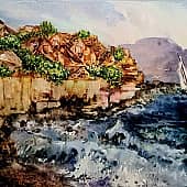 Море, камни. Кисть, мастихин