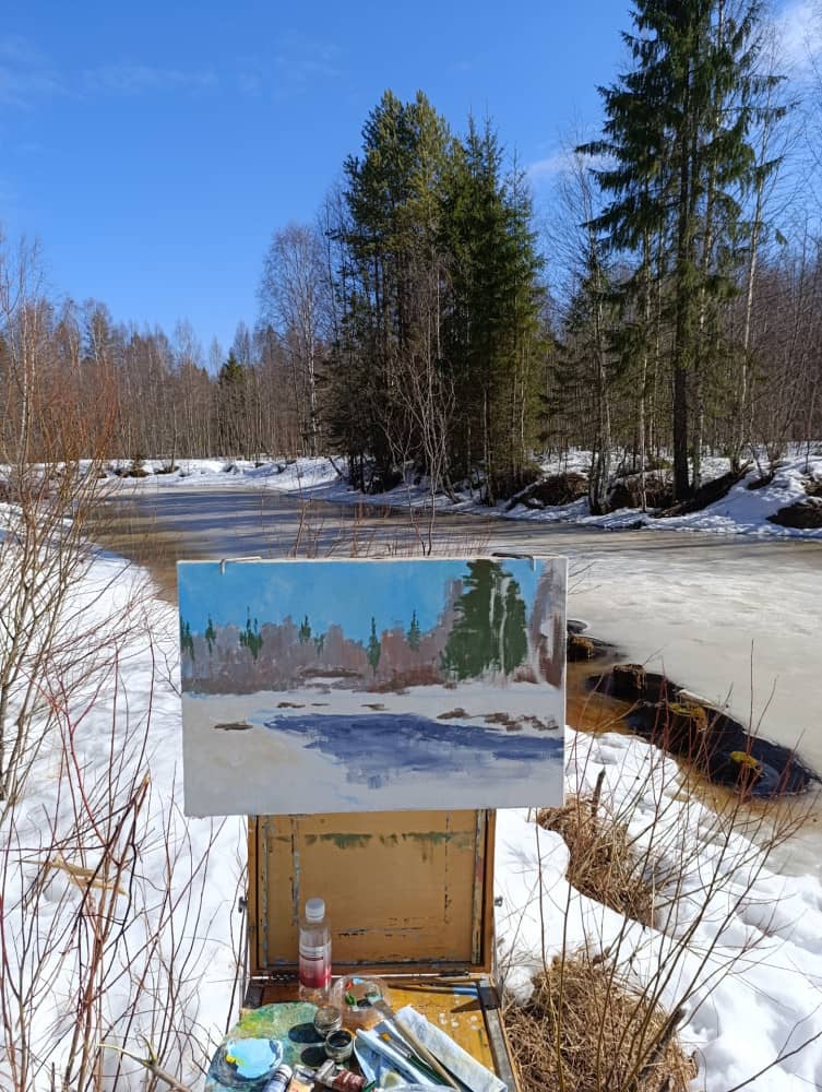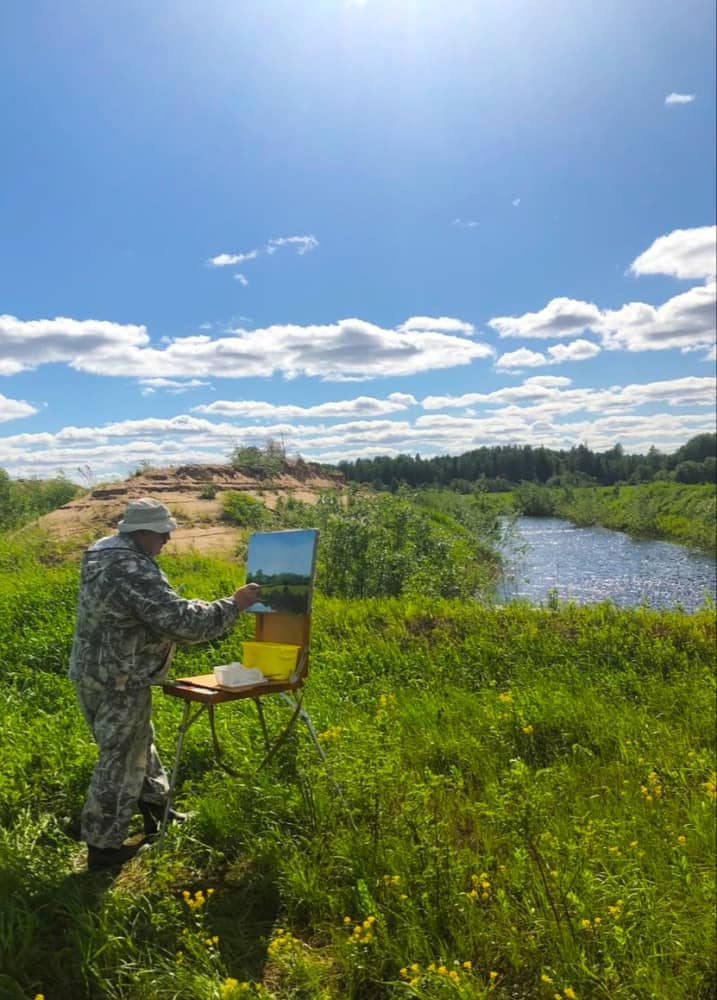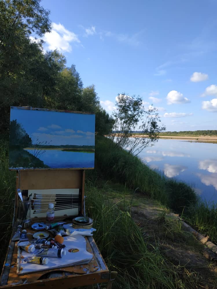 Ещё несколько слов про ПЛЕНЭР Когда пишешь пейзажи непосредственно с натуры, то ты лучше входишь в состояние природы,ощущая не только цветовую гамму, но и запахи и звуки, тепло и холод, движение воздуха и шум воды. Я думаю, что весь этот антураж совершенно необходим, даже дождь или комары...В конце концов всё это будет чувствоваться на холсте