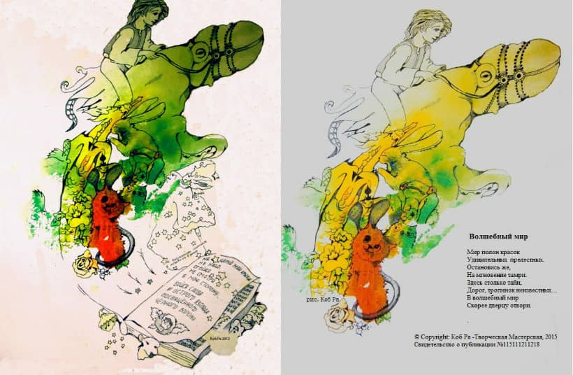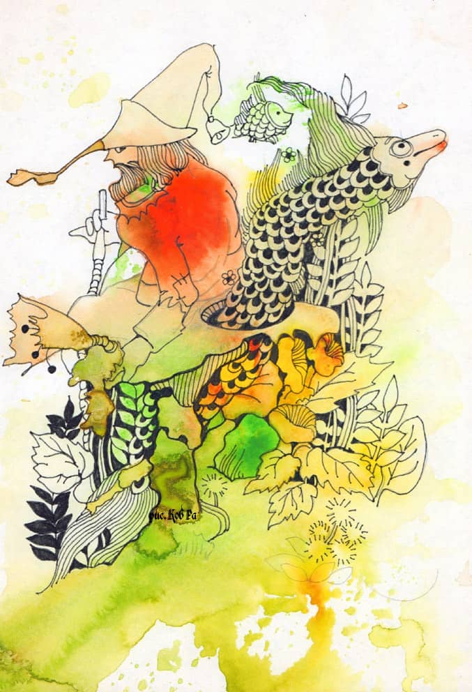 Многие мои иллюстрации были обычными акварельными, кофейными, апельсиновыми кляксами. На моей странице почти всё - монотипия. Все желающие могут присоединиться и сыграть, прислать(или опубликовать у себя) кляксу или или почеркушку.