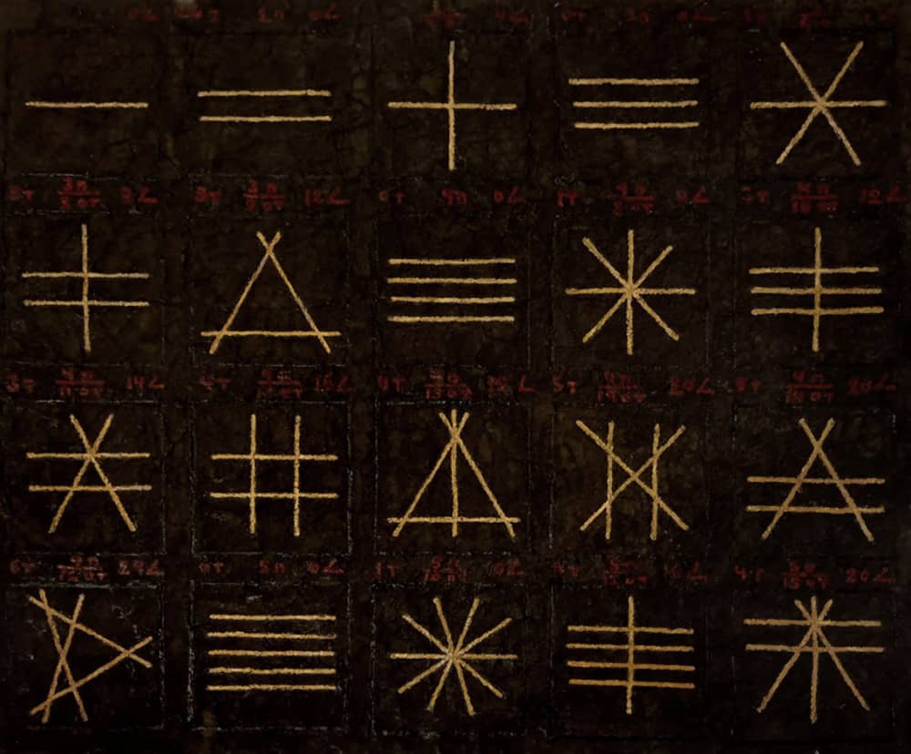 В последовательном варьировании «простейших знаков» Калмыков видел следствие пространственно-временных изменений, универсальную формулу красоты, выраженную на языке, объединяющем науку и искусство. Поэтому схемы сопровождаются вычислениями, подсчетом точек, прямых, отрезков и углов, представленных в каждом конкретном случае.