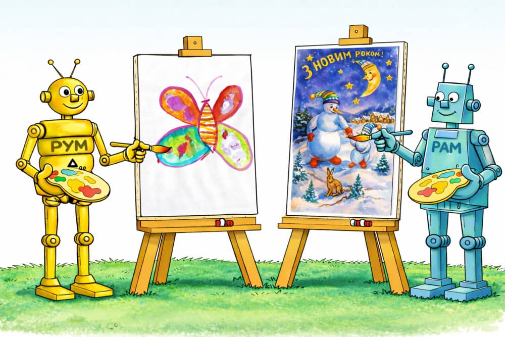 Рисунки внучки и дедушки - акварель