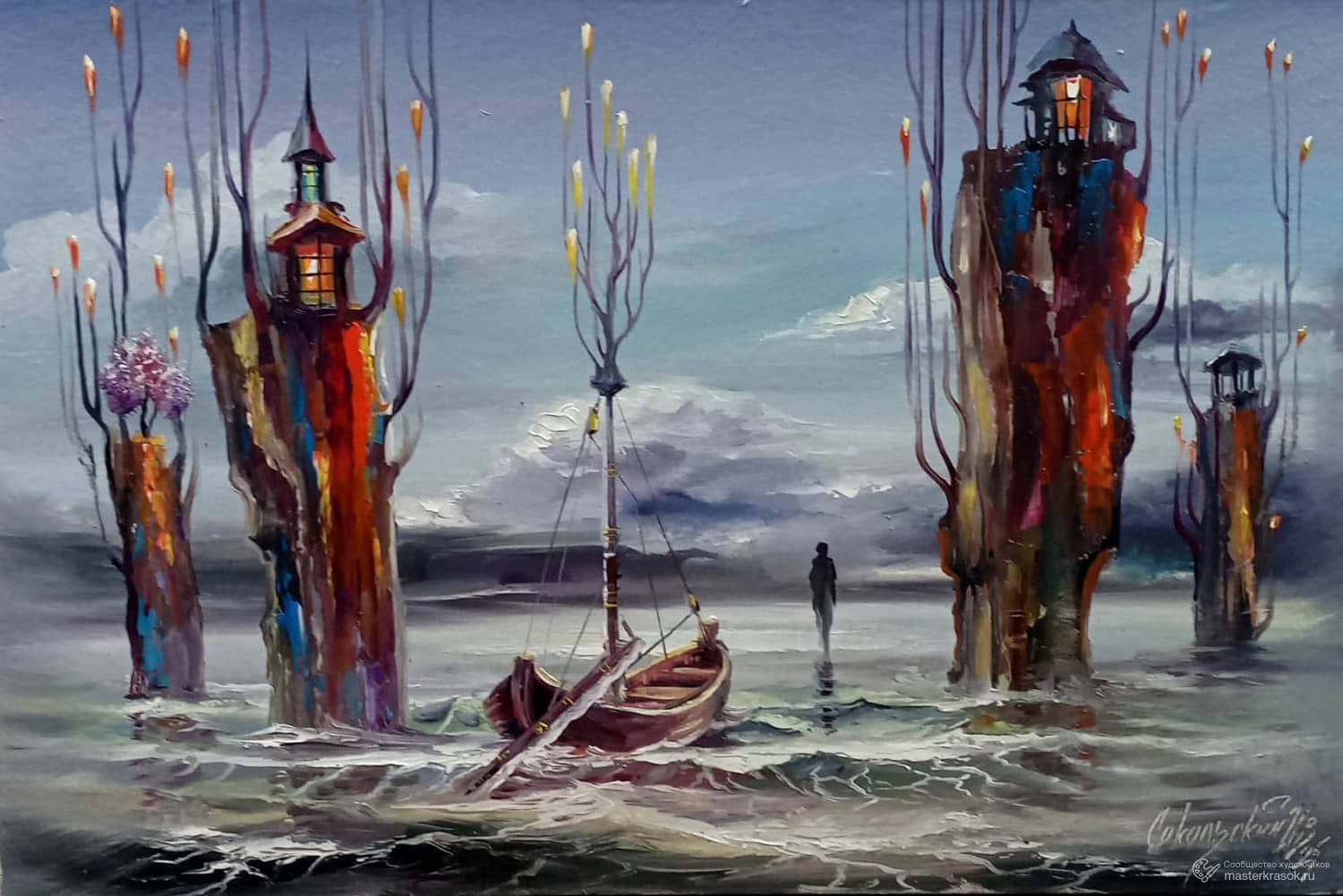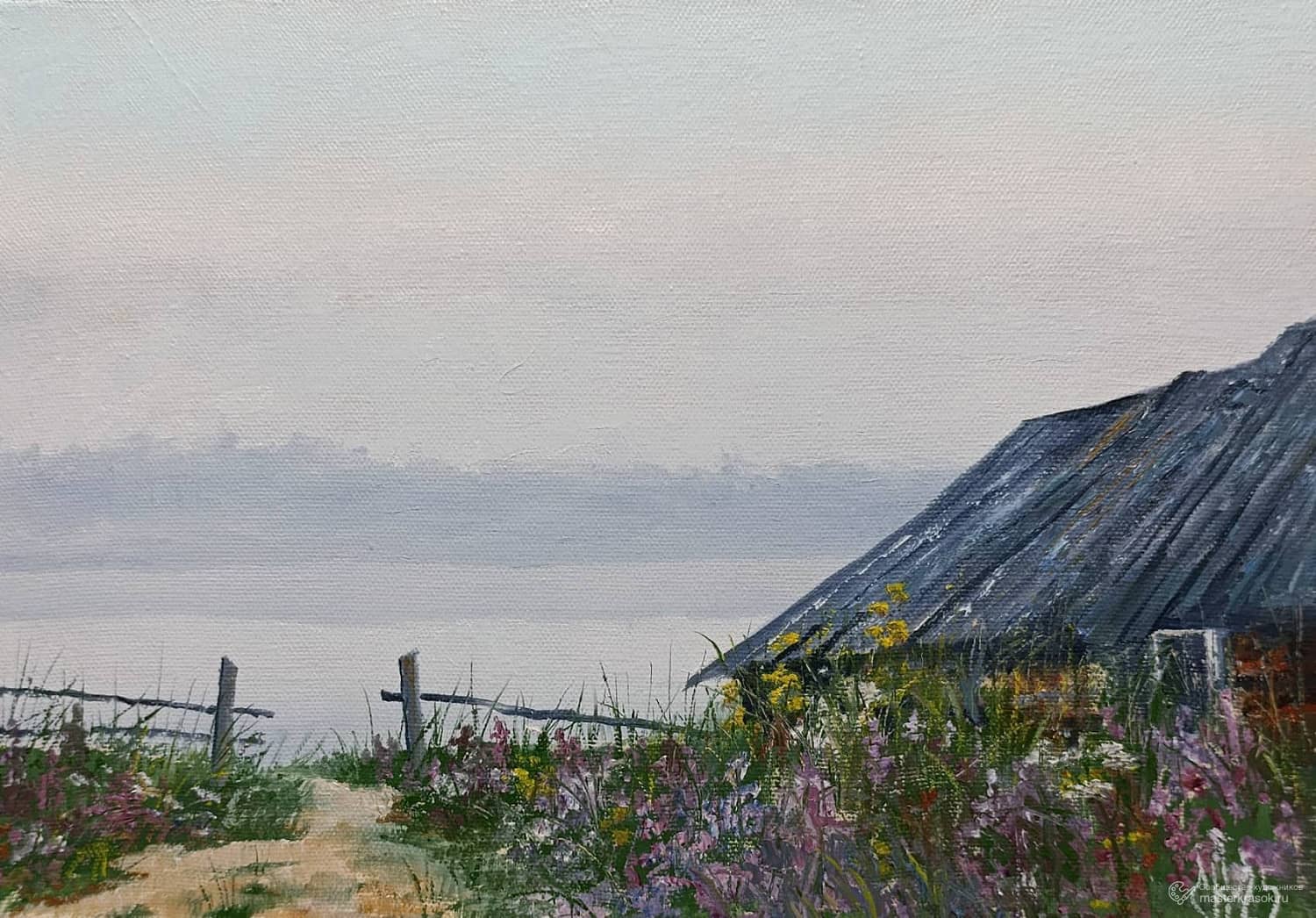 Домики у берега. Пленэр. Живопись ZhNataly.