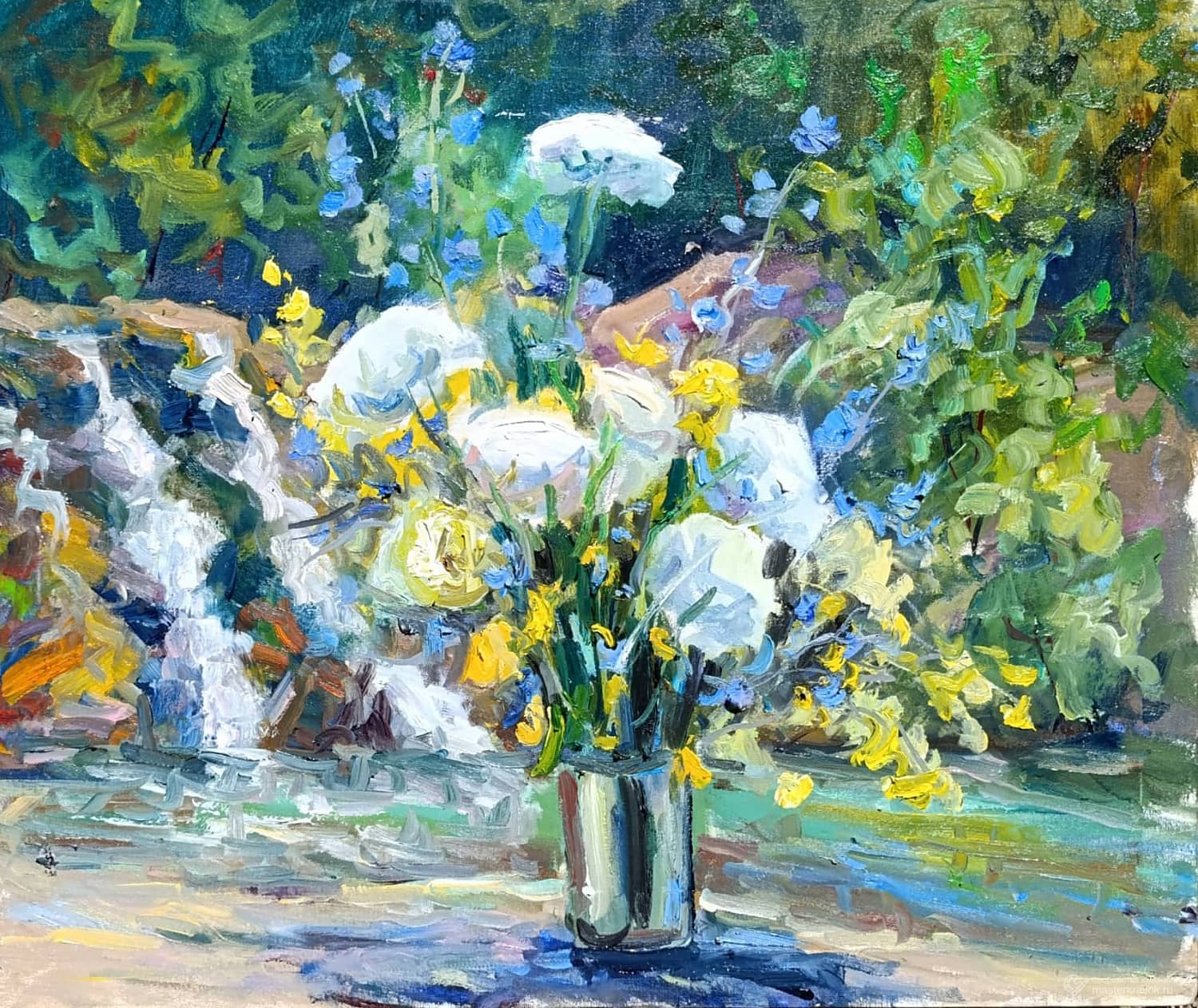 Белые цветы у водопада. Серия натюрморт под открытым небом. Пленэр ZhNataly