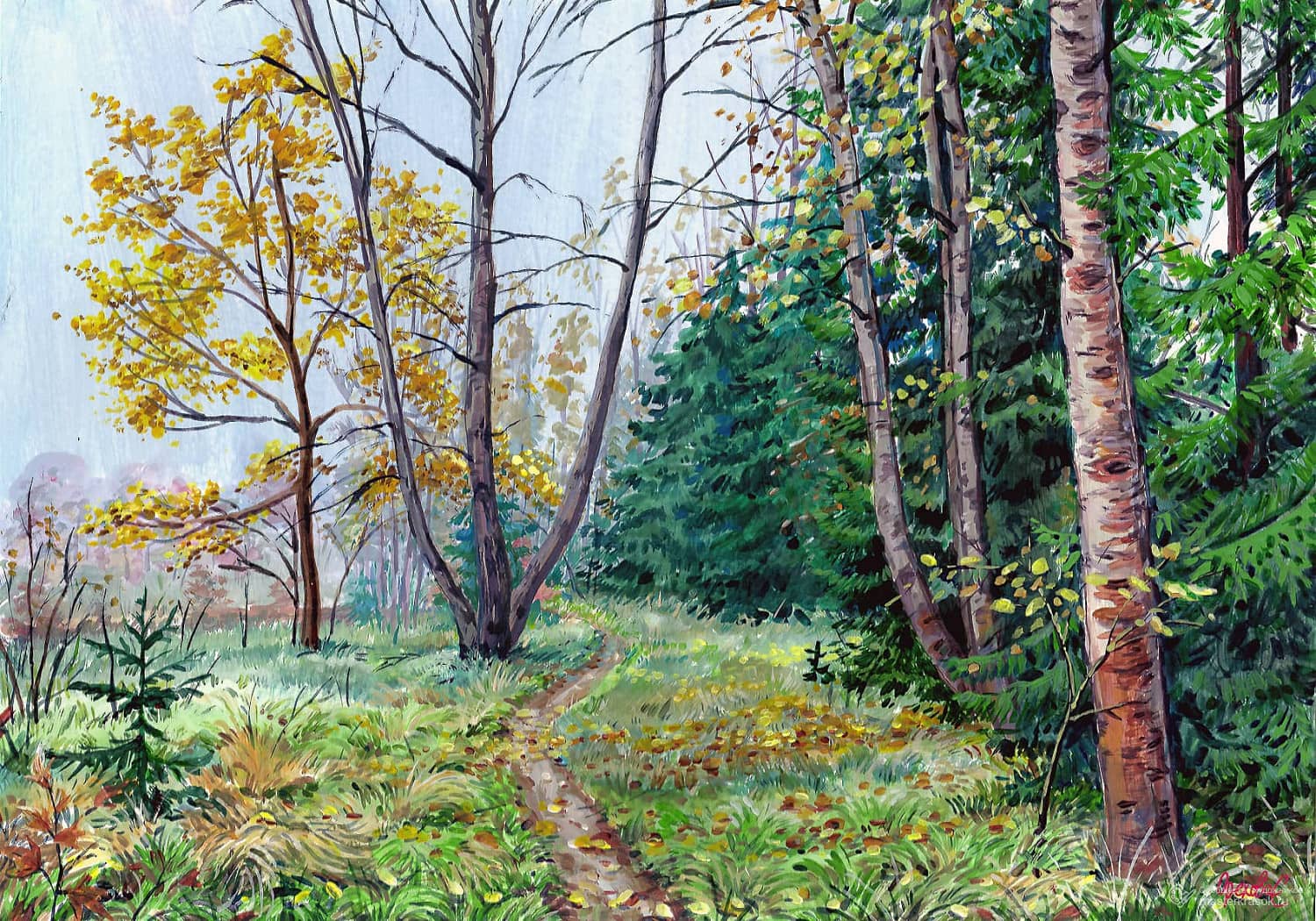 Поздняя осень. Вольная копия с картины В. Поленова "Ранний снег"