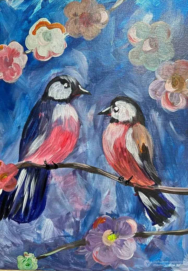 Скворцы на цветочной ветке