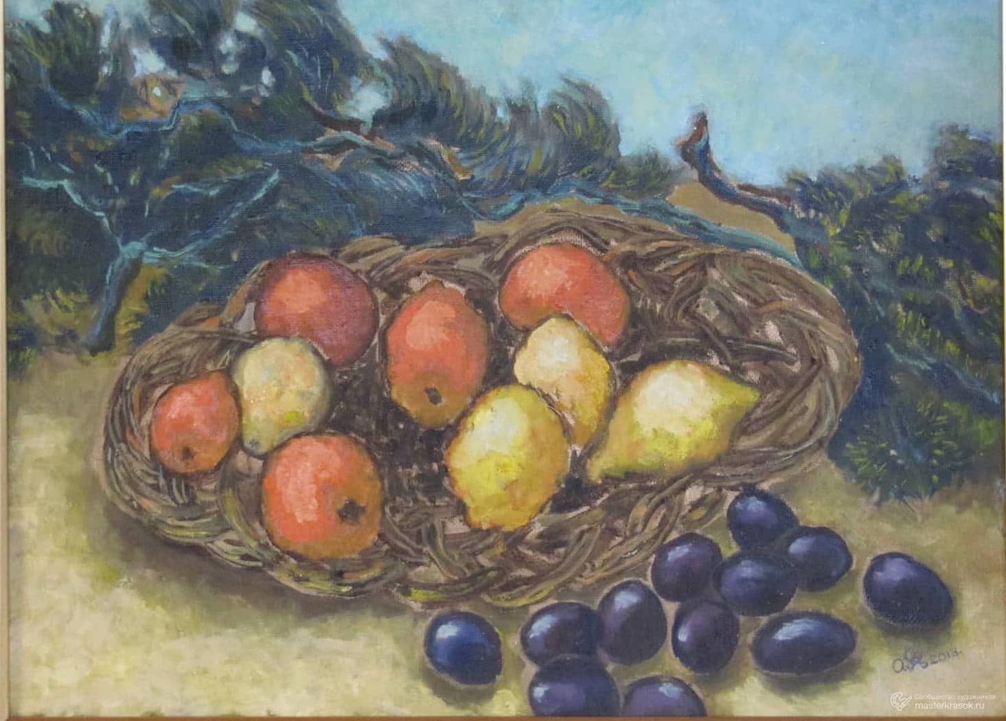 Фрукты на песчаном берегу. С фрагментами с картин Ван Гога