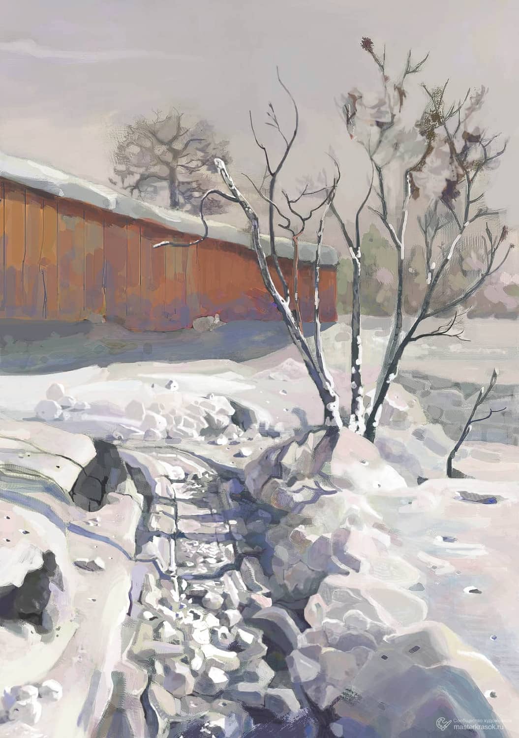 В конкурсе победила работа «По мотивам Поленова Старая мельница»,