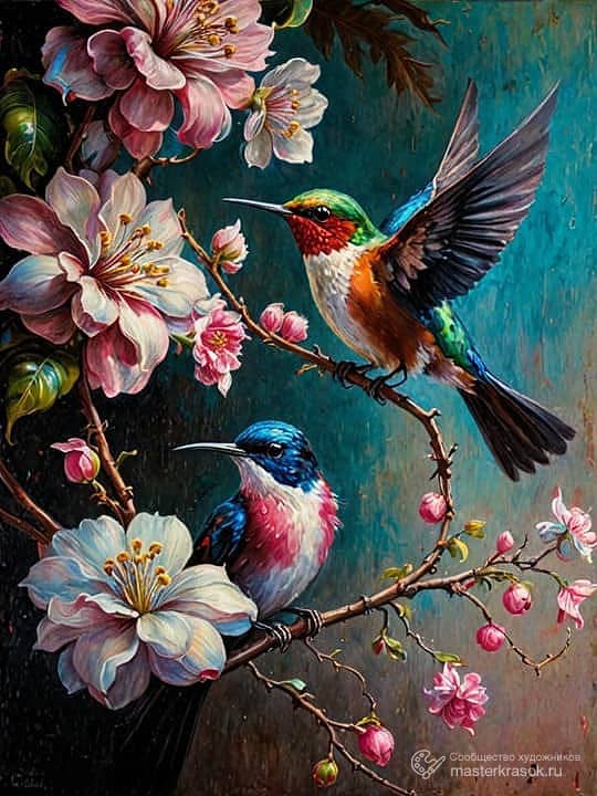 Две птицы и цветы НС