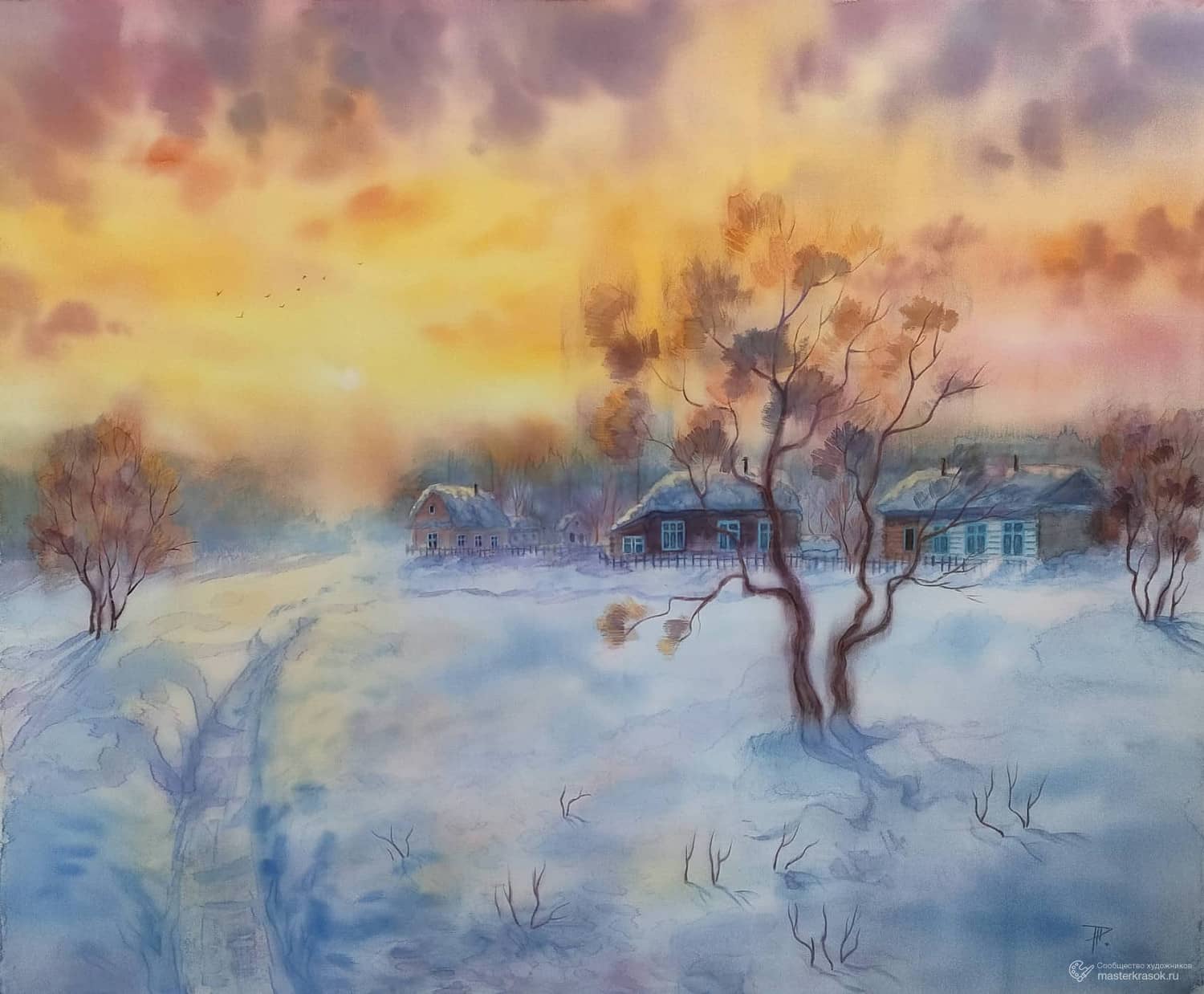 В конкурсе победила работа « Вечер. Мороз. Снег растопить попытался Тёплый закат...»,