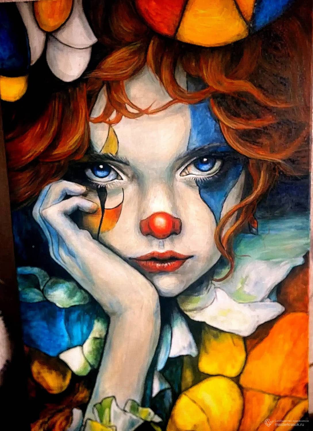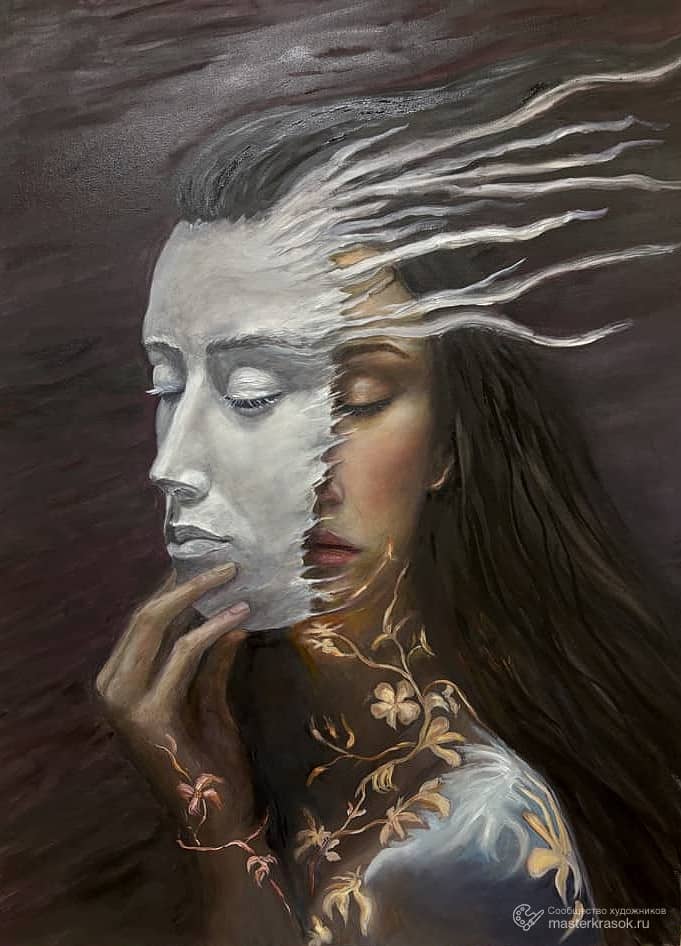 Когда женщина снимает маску ( картина будет со шторкой второй части лица)