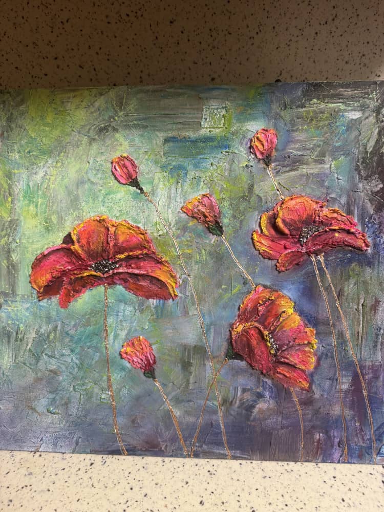 воспоминание о лете, 42*45,5 см, техника «Терра», оргалит, шпатлёвка, акрил