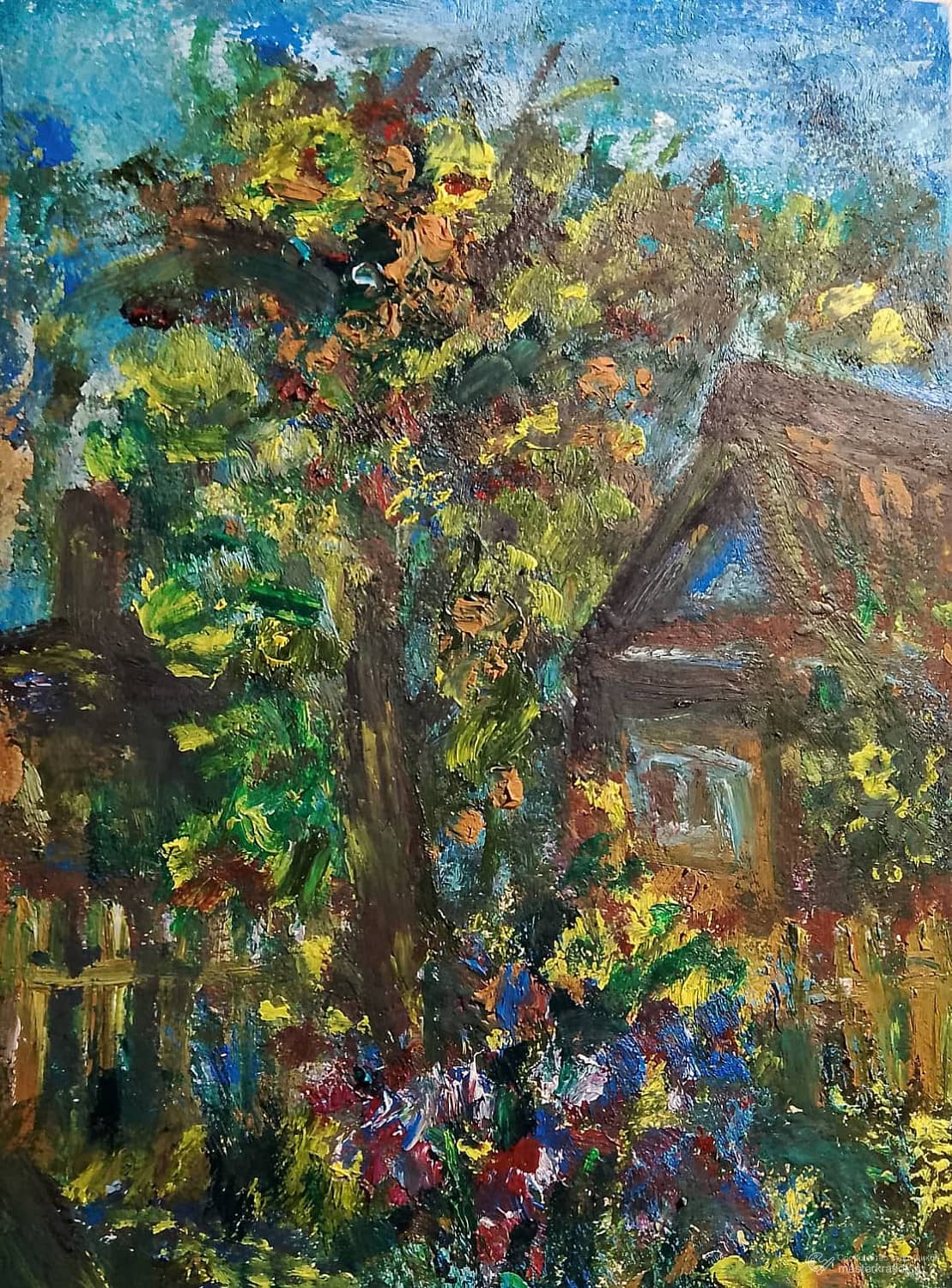 Домики у берега. Пленэр. Живопись ZhNataly.