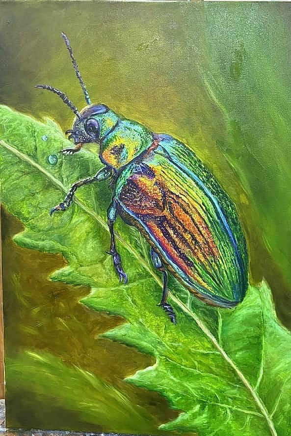 Радужный жук на зеленом листеСловно осколок волшебной мечтыВ крыльях его и - закат ,и рассветТайный природы, которой нет лет )) 2026