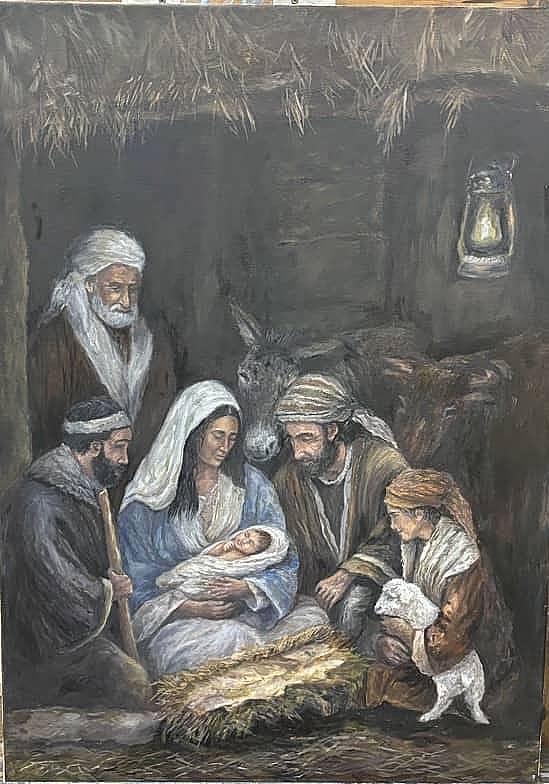 Картина со шторкой. Часть лица будет закрыта шторкой. Если закрыть рукой половину правой стороны ,то виден гипсовый трафарет и рука ( холодная и недоступная ) шторка отодвигается и ты видишь всю картину ) Подготовка к персональной выставке. 2025