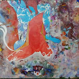 Второй метод, «постукивание»: обмакните кисть в маскирующую жидкость, занесите ее над листом и, водя рукой, острожными постукиваниями стряхивайте капельки жидкости на холст. Здесь контроля уже чуть меньше, зато вид «снежинок» будет более естественным.