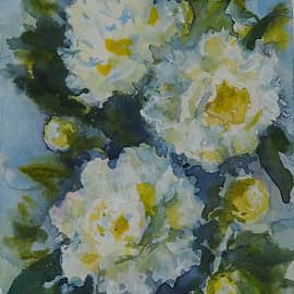 После подготовки фона делаем подмалевок на листьях и стеблях. Лучше всего брать оттенки желтого.