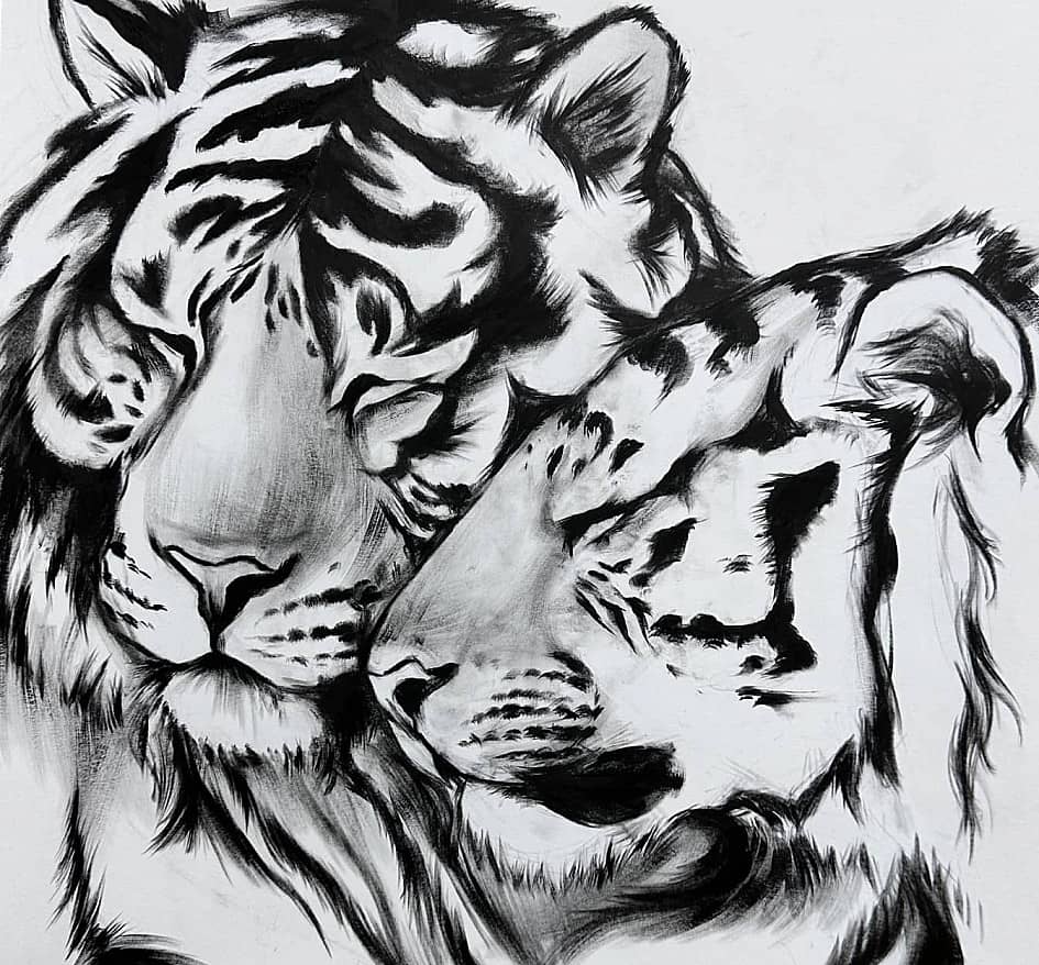 Лейла Эль 15 августа 2025 в 01:58 Мои тигры Это масло по сухому на бумаге.Назвала эту работу так,потому что эта картина вызывает у меня чувство гордости.Это мои вторые тигры,до этого я не рисовала тигров и очень радуюсь когда смотрю на неё. 2023 Перейти