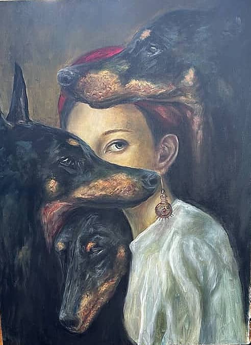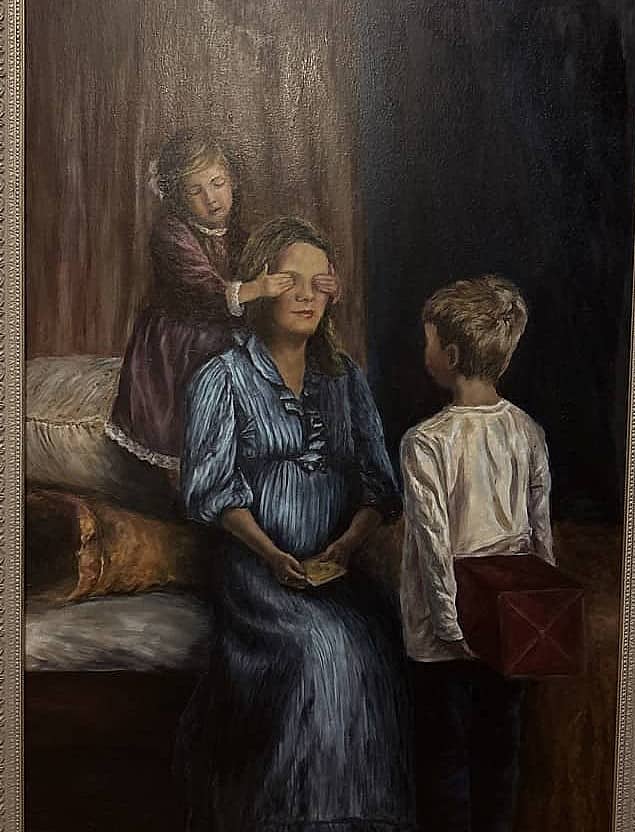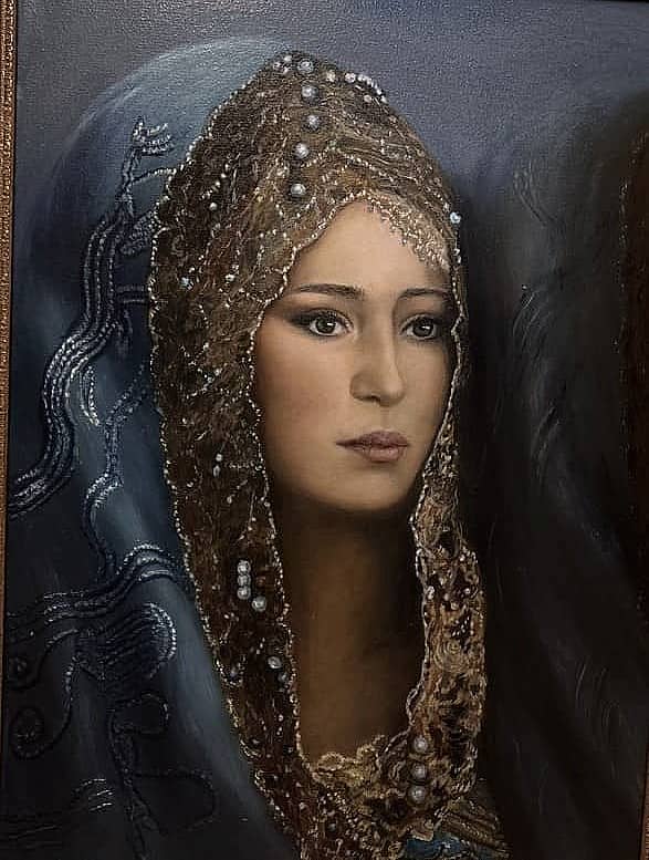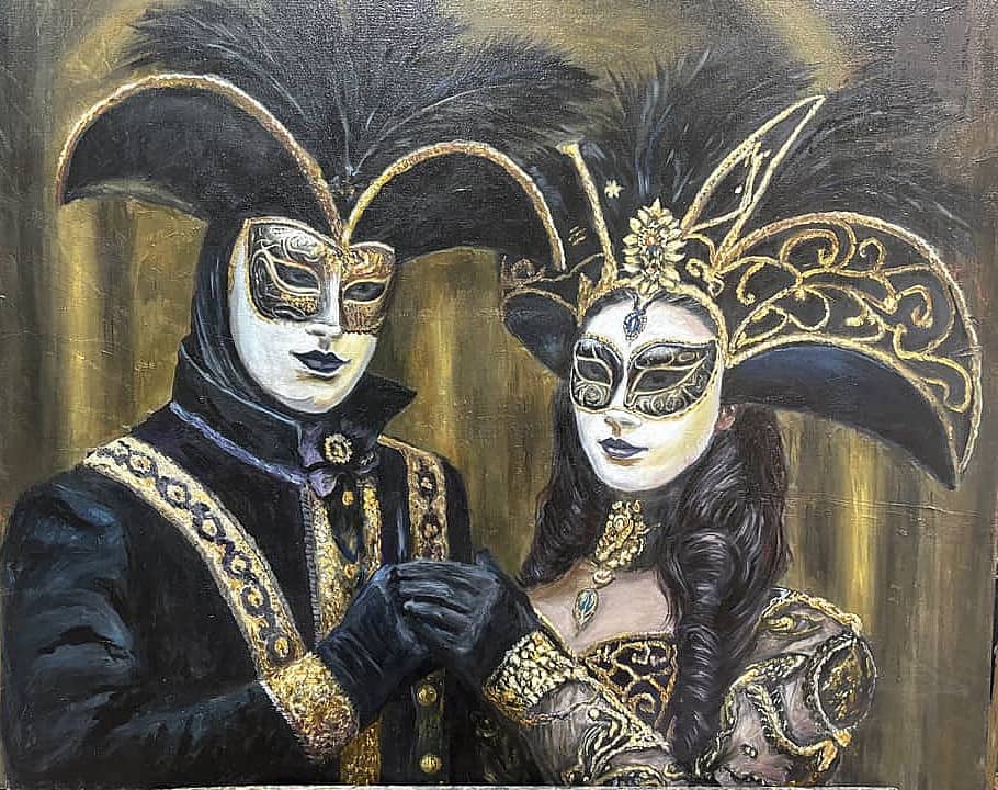 Когда женщина снимает маску ( картина будет со шторкой второй части лица) Картина со шторкой. Часть лица будет закрыта шторкой. Если закрыть рукой половину правой стороны ,то виден гипсовый трафарет и рука ( холодная и недоступная ) шторка отодвигается и ты видишь всю картину ) Подготовка к персональной выставке. 2025