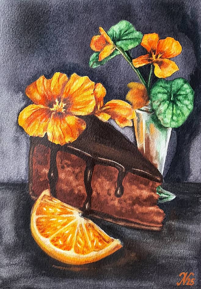 Наталья Андреева 20 октября 2025 в 11:03 Шоколадный торт с настурциями и долькой апельсина 2025 Перейти