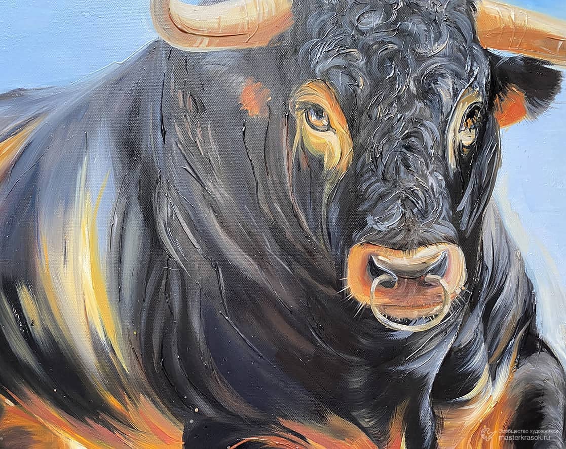 Стиль интерьера — не тюрьма. Это диалог.Думаете, в классический интерьер нельзя повесить такую картину? Ошибаетесь.Правильно подобранная картина вносит живую современность, ломает излишнюю «правильность» и делает пространство живым, настоящим.А в минимализме или сканди — наоборот: тёплая, фактурная картина внесёт душу и глубину.Именно на контрасте рождается эффект «вау».Картина маслом «Телец». Холст на подрамнике, масло, 110/70 см выполнена на заказ.В наличии такая же картина размером 60/60 «Сильнейший». Рассмотрите для покупки ее)