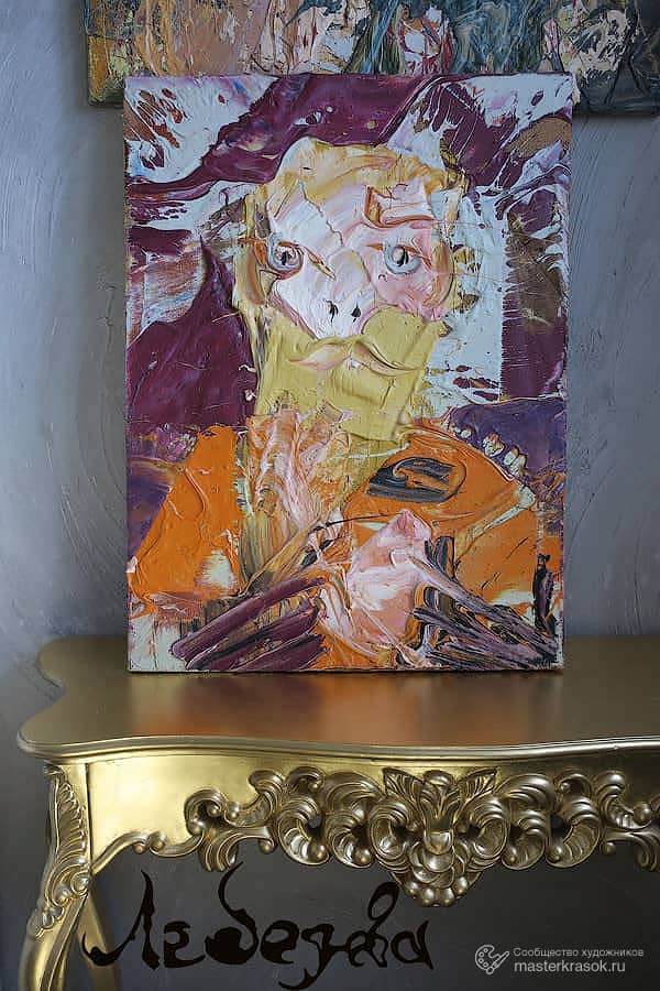 Масло, холст 80 см 60 см Екатерина Лебедева – московская художница. С самого детства Екатерина пишет эмоциональные, объёмные, созданные на одном дыхании картины. В своих работах она отходит от четких, конкретных форм с целью экспрессии, выражения своего внутреннего состояния. Творчество художницы характеризуется насыщенной колористикой, которая усиливает обобщенные формы
