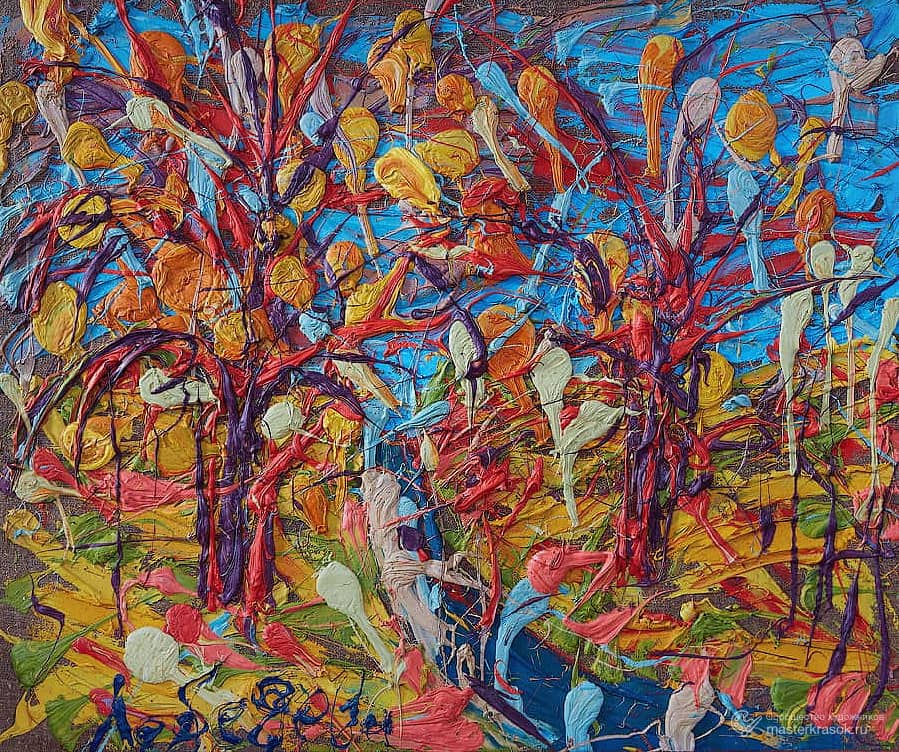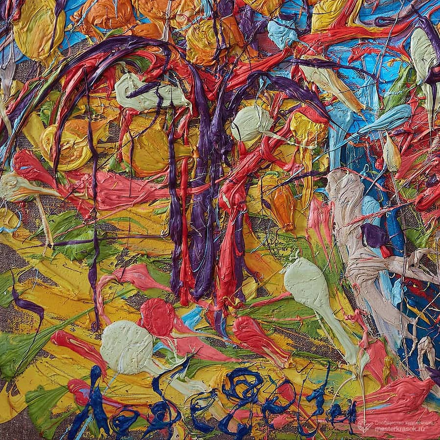 Масло, холст 100 см 120 см Екатерина Лебедева – московская художница. С самого детства Екатерина пишет эмоциональные, объёмные, созданные на одном дыхании картины. В своих работах она отходит от четких, конкретных форм с целью экспрессии, выражения своего внутреннего состояния. Творчество художницы характеризуется насыщенной колористикой, которая усиливает обобщенные формы.