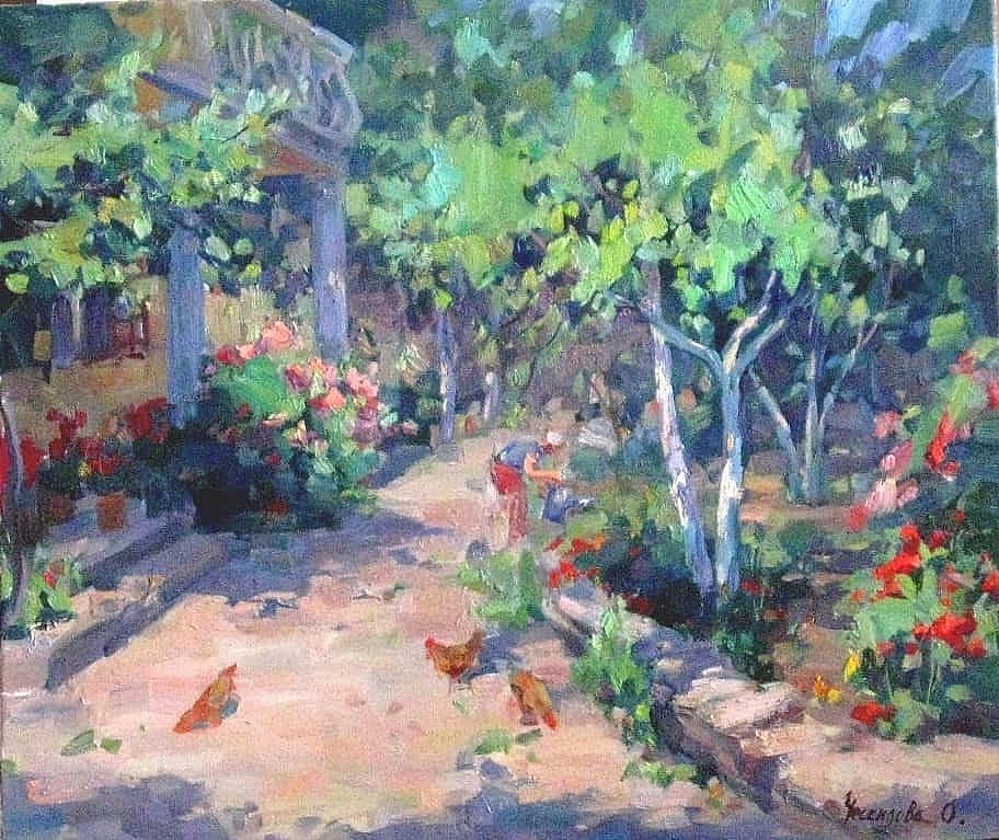 Отдых ( портрет мамы Ческидовой О.А. на крыльце своего дома в Псковской области)