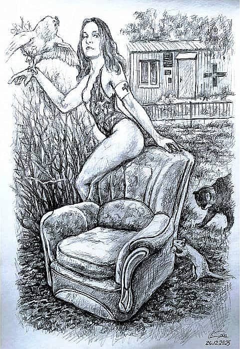Это кресло я обнаружил в лесополосе хутора Ясырёв.Оно вместе с другой мебелью было придумано для модульного фельдшерского пункта хутора, над проектом которого работал легендарный французский архитектор Людвиг Мис ван дер Роэ. Оно изготовлено вручную из тикового дерева,обтянутого китайским шёлком,добытого из кокона тутового шелкопряда с изображением "Грозящего Амура" Фальконе нанесённого на изнаночную сторону шёлка с помощью трафарета и специальной сетки . Кресло наполнено холлофайбером и может быть подвешенным к потолку на цепи,что позволяет ему слегка покачиваться.