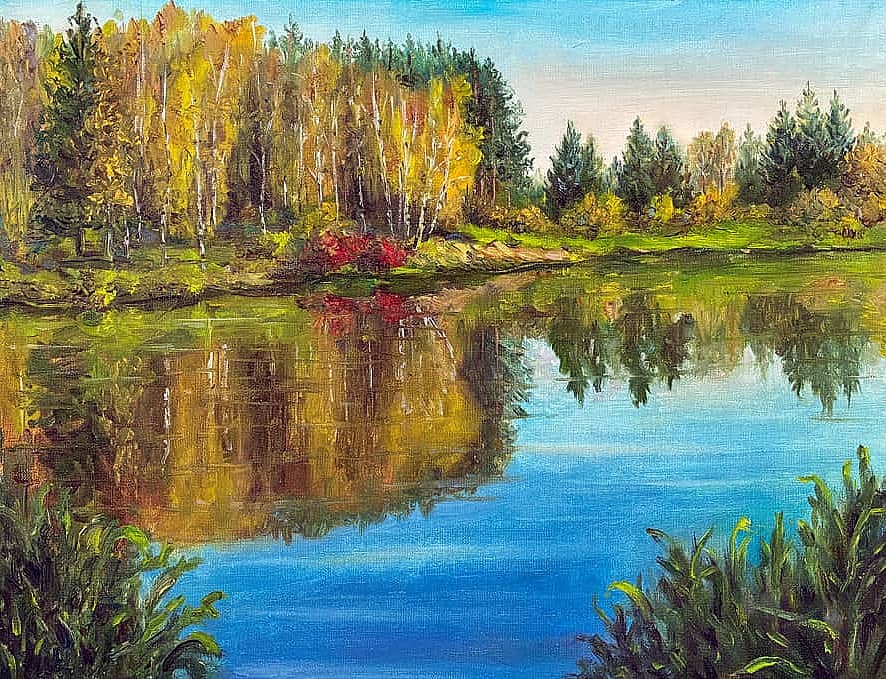 Осенний пейзаж с храмом