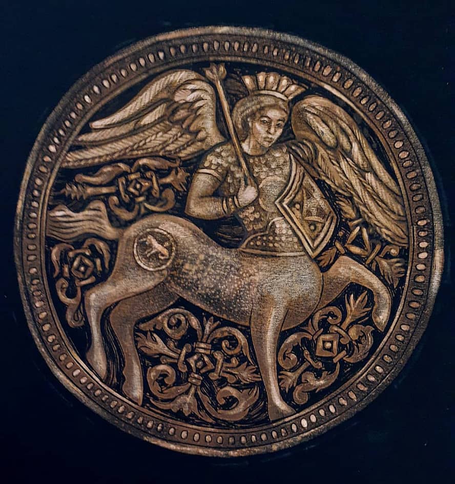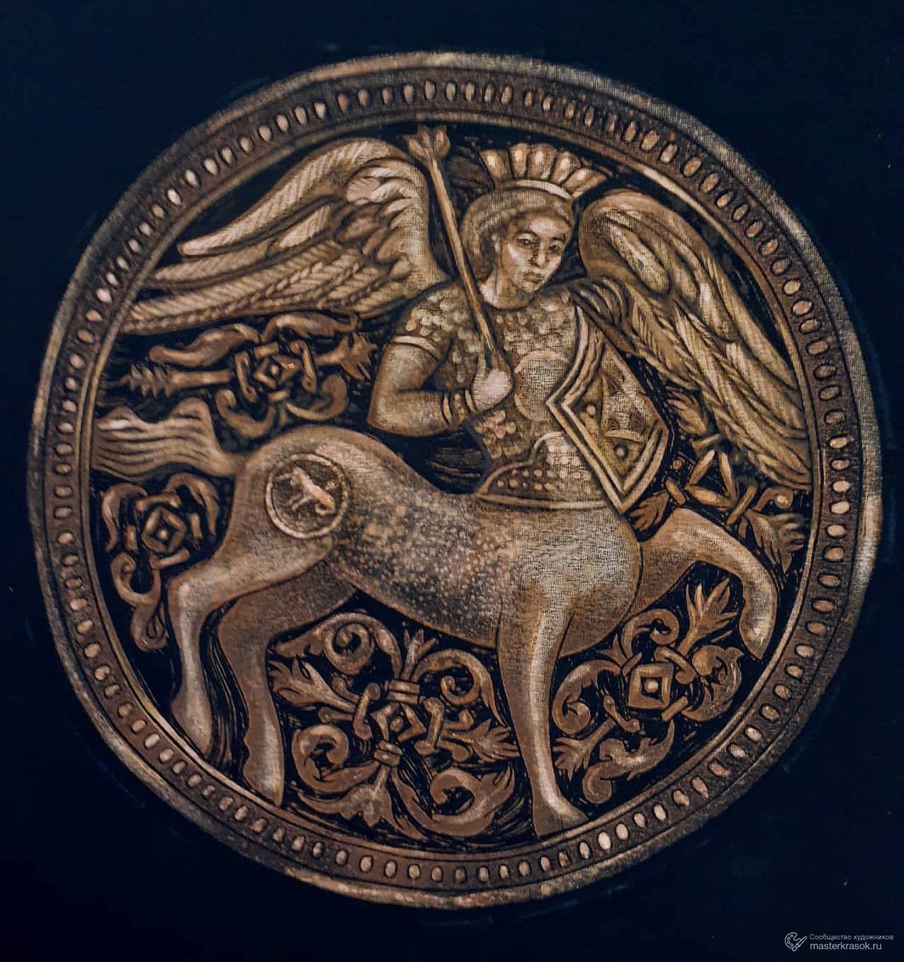 Китоврас — мифическое существо, у индусов - ганхарв, у сирийцев - жиндурв, у греков - кентавр. Русский кентавр, упоминаемый в апокрифах с XIV века, иногда с крыльями. Этот получеловек-полуконь был особенным символом, воплощающим удачу в делах и исполнение желаний. Изображения Китовраса часто украшали двери дворцов, стены домов вельмож и ритуальные предметы. Наши предки (равно как и многие другие народы) верили, что этот кентавр обладает необыкновенной мудростью и силой. Он был символом тайн и света. Считалось, что тем, кому благоволил Китоврас, он посылает знания о самых невероятных процессах во Вселенной. В древне-русской базе образ Китовраса связан с именем царя Соломона, в разных сказаниях он и брат его, и сподвижник, а то - и враг и соперник, но так или иначе именно Китоврас-архитектор строит Храм - знает, как обрабатывать камни без применения металлических орудий. Крайне любопытный и показательный момент – Китоврас может идти только прямо. Говорить только правду. Прямолинейный. Поэтому на его пути, по приказу Соломона, сносят все строения. Одна вдова же просит Китовраса пощадить её жилище, он изгибается, чтобы обойти его, но ломает ребро, изрекая афоризм: «Мягкий язык кости ломает». А знаете ли вы, что в фондах Воронежского краеведческого музея хранится один из нескольких редчайших медальонов-зеркал, найденных в нашей стране. В свое время член Воронежской ученой архивной комиссии С.Е. Зверев по поводу выставки к XII археологическому съезду писал: "В отделе древностей исторических, представленных на съезд Воронежским губернским музеем, обратил на себя внимание медный медальон с изображением Китовраса. Им заинтересовался член американского музея естественных наук в Нью-Йорке В. Иохельсон. Совершенно такие же изделия собраны им у тунгусов Гижигинского округа Приморской области и у юкагиров Калымской тундры (за Полярным кругом) Якутской области. У обоих племен эти кружки служили грудным украшением (привешиваются к переднику на груди женщин) и называются "грудным солнцем". Украшения эти как семейные драгоценности переходят по наследству. С другой стороны якуты говорили Иохельсону, что такие же бляхи находились среди металлических подвесок старинных шаманских костюмов". Р.S. по случайности счастливой появился он в этом виде сразу после радуги, а по индийской мифологии гандхарв, он же наш Китоврас, между прочими распорядками является богом радуги. P.P.S Очень интересна статья А.П. Окладникова "Бронзовое зеркало с изображением кентавра, найденное на острове Фаддея"