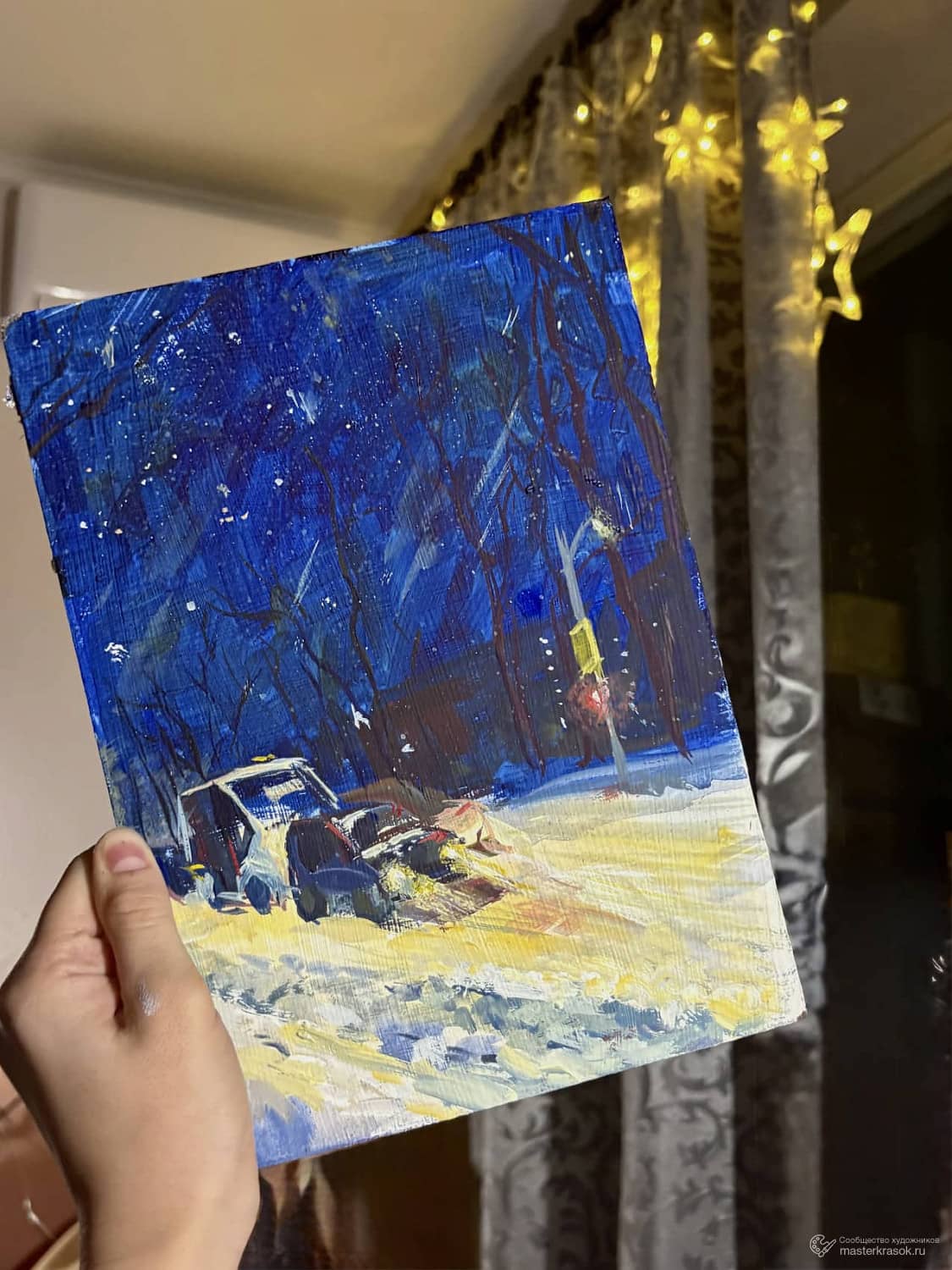 Вечером возвращалась домой и подумала, что очень здорово иметь возможность вернуться в тепло и уют, радоваться такому темному и холодному вечеру в контрасте с горячей едой и уютной теплой комнатой. Так удивительно, что тысячи таких же людей едут в своих машинках и автобусах, спешат поскорее к родным или просто на отдых, и всё это вместе образует огромный шумный и светящийся поток. Дома меня ждал Влад и горячий грибной суп, а потом я весь вечер млела и грелась. Весь этот вечер превратился в этюд