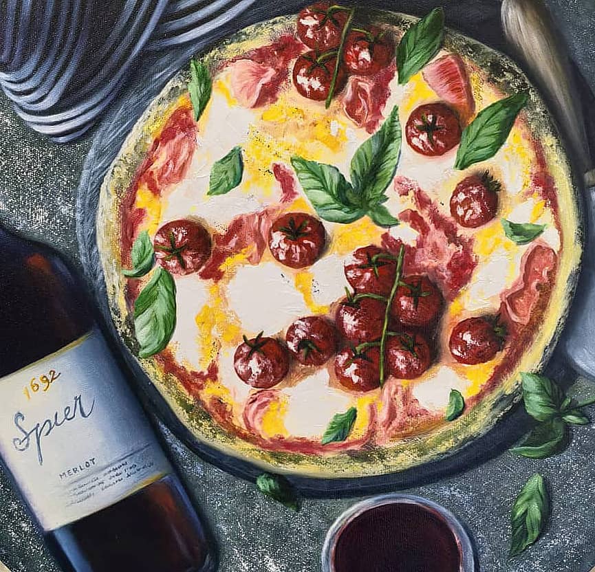 По мотивам картины"Вид на озеро Леман", Александра Каламса, в технике Гризаль