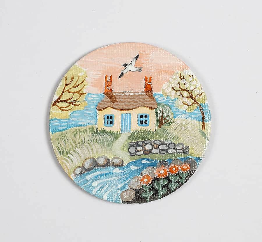 Оленики в вечернем лесу. Магнитик. 10 см.