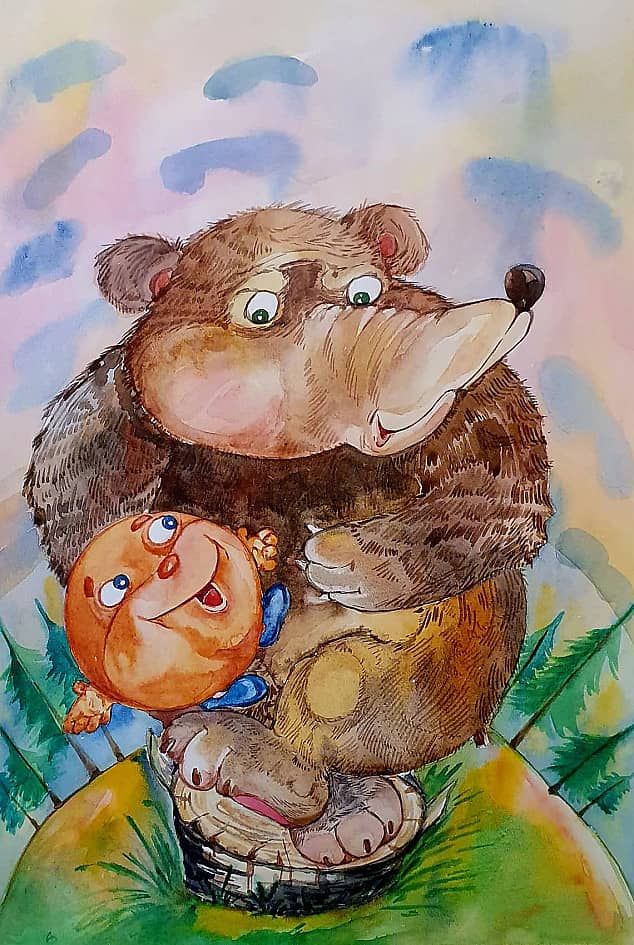 Слоник и зонтик. Иллюстрация.