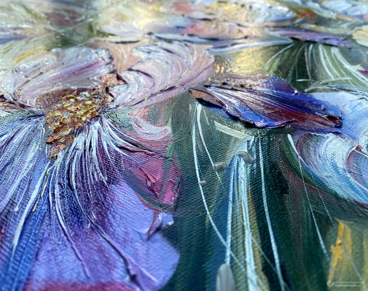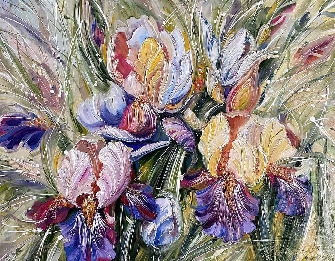 «Ирисы. Душистый аромат» Если картина получила большой отклик и тем более ее купили, можно ли ее повторить?Этично или нет?У всех художников есть удачные вещи и они сталкиваются с подобным вопросом.Здесь много всего, но скажу кратко и только из своей субъективной практики.Во-первых, у меня сложная техника, физически повторить невозможно. Слишком много на спонтанности, много слоев и много разных материалов. Но, если мне самой очень хочется повторить мотив, то я могу написать авторскую версию и это НИКОГДА НЕ БУДЕТ ТОЙ ЖЕ КАРТИНОЙ.Здесь для меня первичен момент, что я хочу повторить мотив.Кстати у многих великих есть куча повторов. Малевич не один квадрат закрасил. И молодец! Не меньше четырех квадратов ..Клод Моне настоящий чемпион по повторам! Стога и кувшинки десятками,Айвазовский многократно повторял свои популярные сюжеты .. «Девятый вал» не один …Эдвард Мунк написал четыре версии «Крика», тема не отпускала.Так что картина «Ирисы. Цвет ветра» вышла в новой версии себя.Встречайте- «Ирисы. Душистый аромат» 60/80В наличии