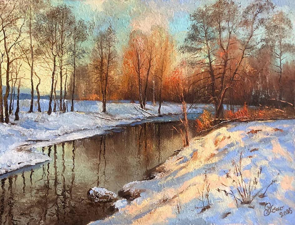 " Вечер. Мороз. Снег растопить попытался Тёплый закат..."