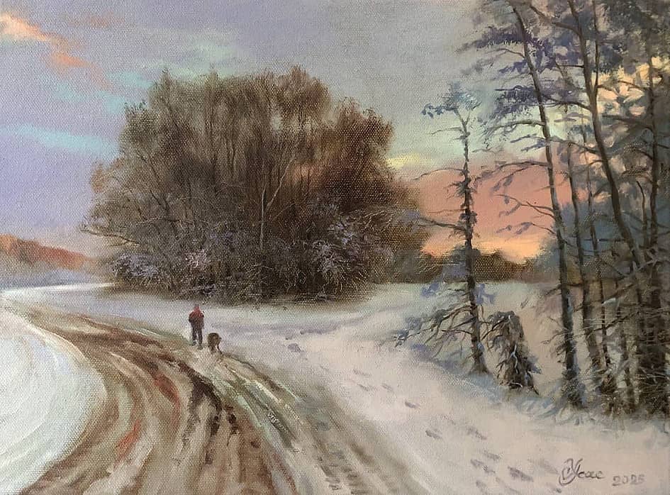 " Вечер. Мороз. Снег растопить попытался Тёплый закат..."