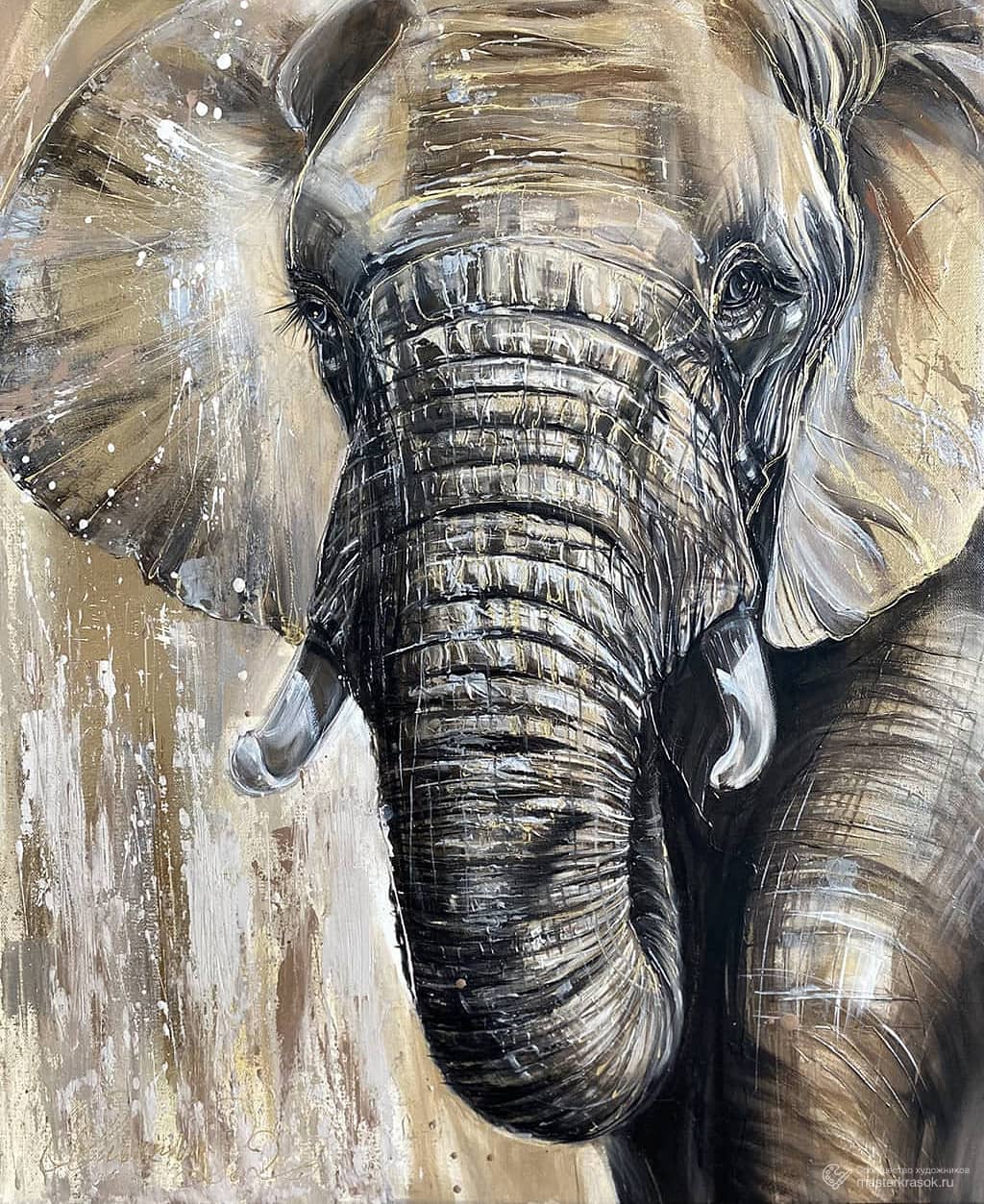 Картина маслом на холсте 60х80 с применением текстурной пасты и золотой потали. Торцы прописаны в тон картине- можно сразу повесить без багета.Слон олицетворяет мудрость, силу и благоразумие. Он служит в Индии, Китае и Африке эмблемой царской власти и символизирует качества, необходимые для хорошего правителя - достоинство, проницательность, интеллект, терпение, а также верность, миролюбие, долголетие, процветание, счастье. В странах Азии и Африки слон как эмблема играет ту же роль, что и орел или лев в странах Европы и Америки.Слон — это символ верности, удачи, силы и долголетия. В современном интерьере картина со слоном послужит вам поддержкой и опорой на пути в достижении цели. Это отличный выбор для тех, кто хочет наполнить свою жизнь силой и мудростью. В таком случае у слона должен быть поднят хобот.Слон с хоботом вниз в учении фен-шуй считается очень действенным символом для женщин в плане плодородия. Если девушка собирается стать мамой, то такое изображение будет действовать на неё благоприятно. Символы работают и влияют на нас настолько, насколько мы в них верим и способны с ними отождествиться. А вы верите в символы?