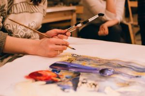 Даже если краска на картине высохла, ее все равно можно развести водой. Вы можете смочить ее кисточкой и тогда с нею опять можно работать. Это позволяет исправить огрехи, осветлить какие-то участки, убрав немного краски, или же вмешать туда другой цвет. Но все же это нужно делать аккуратно и в меру, чтобы не повредить поверхность листа.