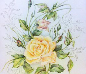 Для начала попробуем нарисовать несложную работу - розу. Сначала на бумаге нужно подготовить рисунок простым карандашом. Карандаш лучше брать твердый, чтобы наш рисунок был менее заметен (подробнее о степени жесткости карандашей описано в статье "Жесткость карандашей").