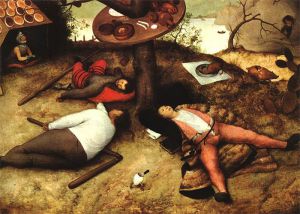 Жизнь художника выпала на тяжелый для Нидерландов период: в те годы страна сгибалась под гнетом испанских захватчиков, и многие картины Брейгеля посвящены этим страшным временам, когда виселицы и кострища встречались чуть ли не на каждом шагу. В его картинах нередко можно встретить мотивы осуждения царившего вокруг беспорядка и низменных человеческих страстей, человеческой глупости и жадности.