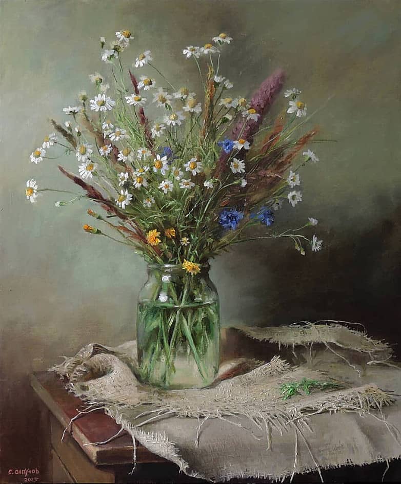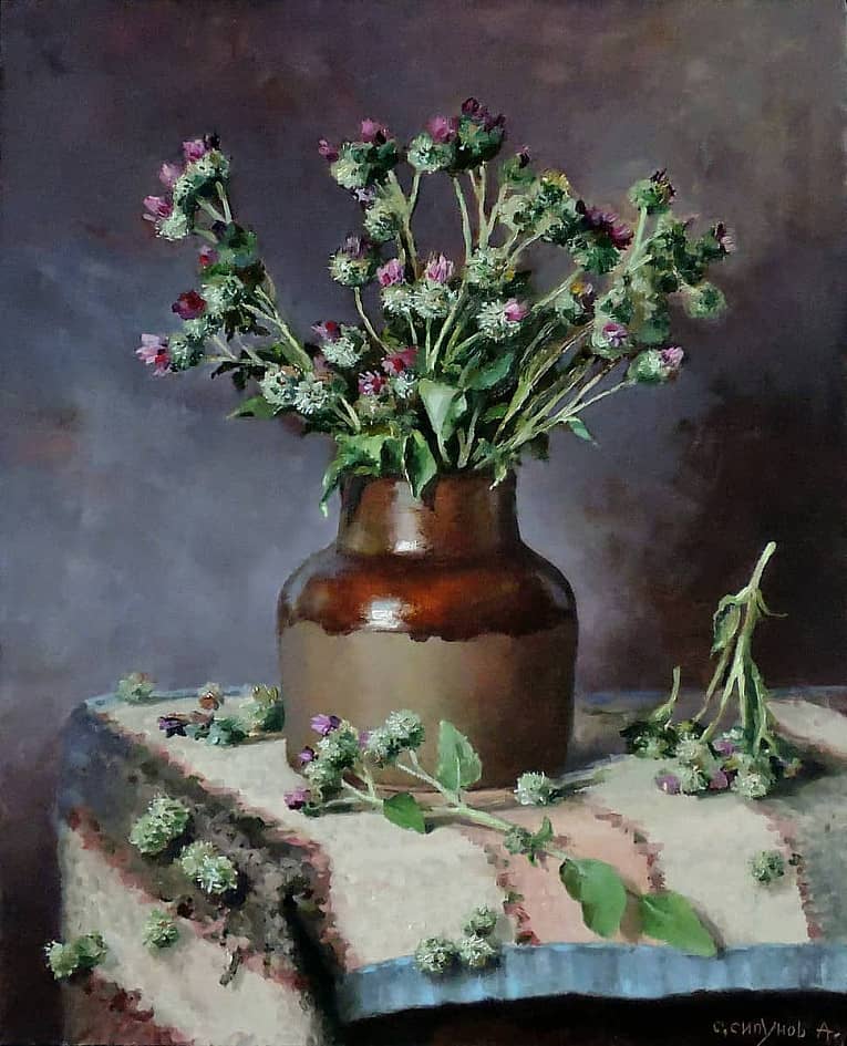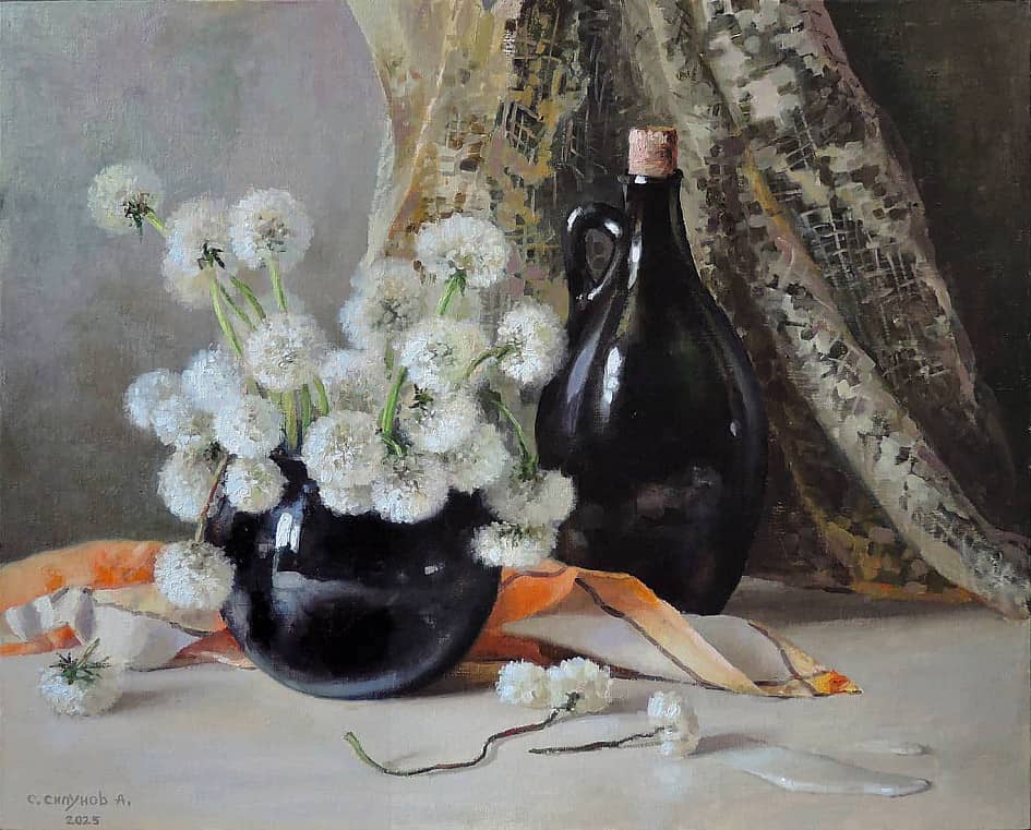 Одуванчики в чёрной вазе