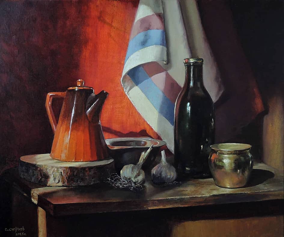 Хочу сказать, что чёрный цвет в картине отсутствует почти совсем. "Чёрный" цвет составлялся из тёмно-фиолетового (чуть в уклон красного) и тёмно-зелёного цветов. 2025