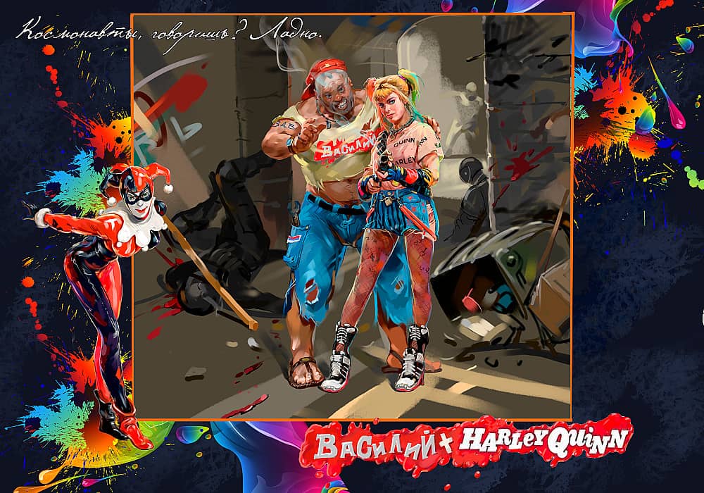 ИИ. Отсылка к картине Дух самурая, где девочка положила своих одноклассников. А ведь не было этого в советской школе. Здесь же и картина с Квин, которая помогает русскому Василию прибрать Космонавтов. У них есть супергерои и у нас тоже, это бывший десантник Василий, выпил чего то не того на сходняке десантуры и превратился в супера. А суперы как то общаются между собой и вот...с приездом, Квин, с тобой то мы уж....Ладно, ладно, Василий, красноречие твое известно, следствие разбитых бутылок о голову. Да ладно, шутка.