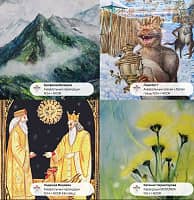 Калейдоскоп в зависимости от направления света выглядит по разному и разные сюжеты видны. Дополню следующие фото при лампе. Фактурные пасты, акрил золото ( три оттенка) Кто-то видит богиню Баст если увеличить образ женщины на переднем плане , она с мужчиной обнимается, позади улица, дерево огромное над домом. Двое стоят в лодке , дом на море. Была идея расписать красками , но я себя остановила. Потому что мне эта картина в данном виде напоминает старинную монету или щит и больше ничего и не надо. Все встало на места без других красок. 2025